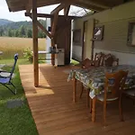 Namestitev v Podnartu se odpre na pogled na teraso. Na voljo so tudi brisače.